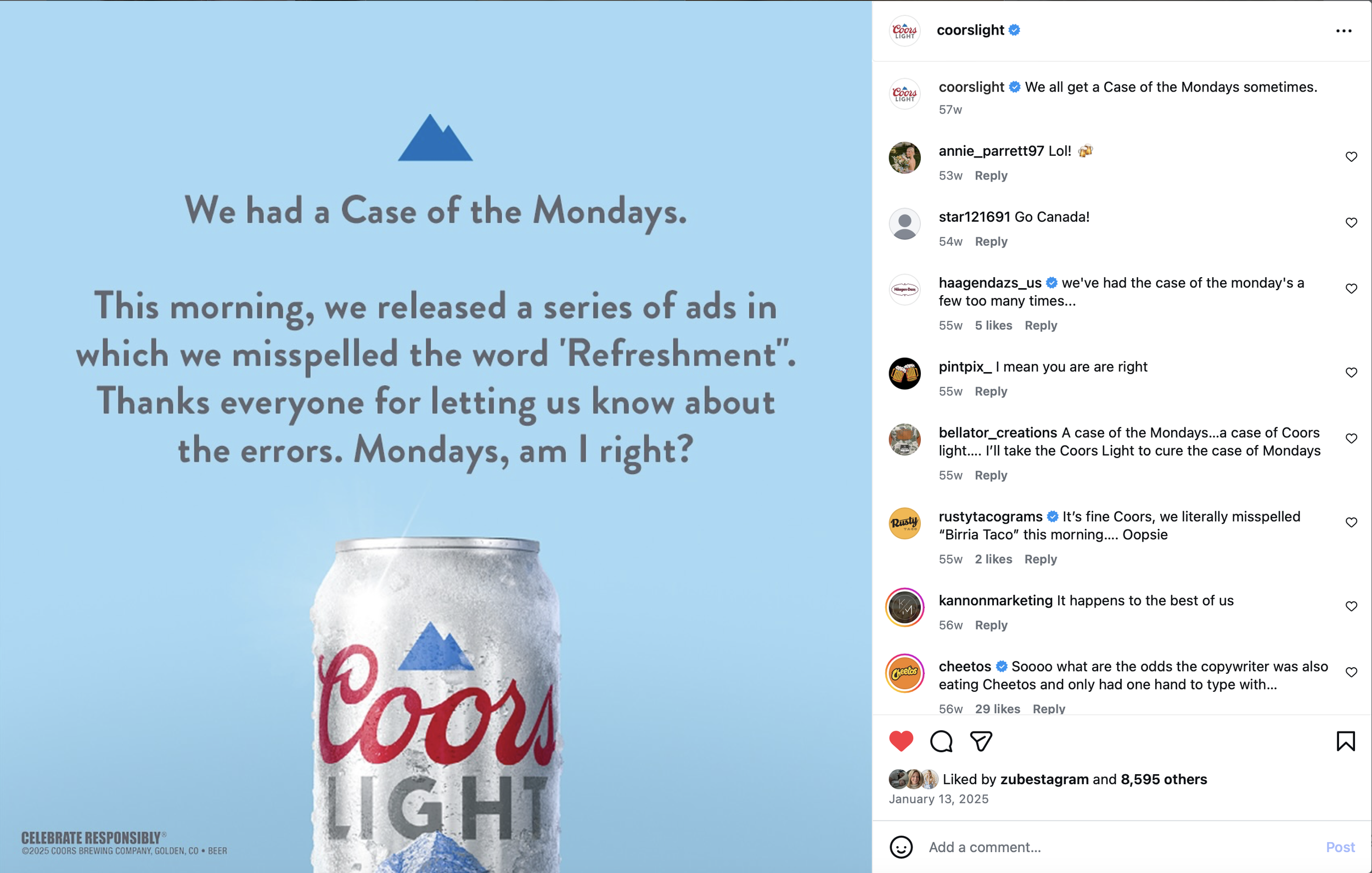 The monday after the super bowl is the worst. no one shows up for work- you might as well chill. that’s why coors light created mondays light- the perfect beer to drink on the monday after the super bowl. supporting mischief in their awesome idea, we rounded out the campaign for PAID social.